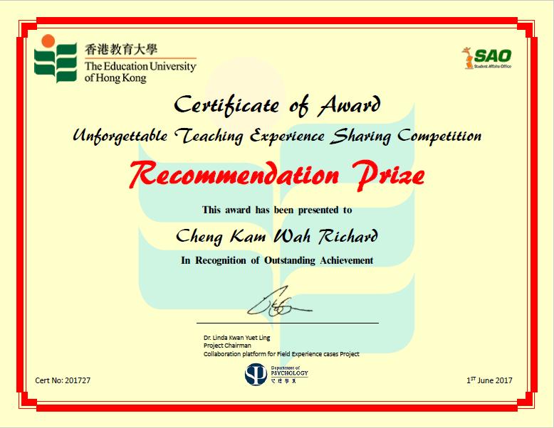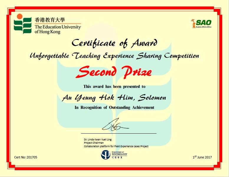 這堂成功引起全班學習動機,在良性討論下,提升同學溝通表達的能力,亦從中更正某些學生的邏輯推論,重塑他們對大學生的想法。當然,到下課時,聰明的同學還是會重提那個「關鍵性」問題,而我當時大方地說:「同學,這個問題很敏感啊!畢竟我只是剛來的實習老師,或者先讓我認識你們多一點,再考慮會不會答你這問題啦!」當下,我得到了某些學生的掌聲,亦得到某些學生的失望神情,但肯定的是,之後我得到了一段緊密的師生關係。